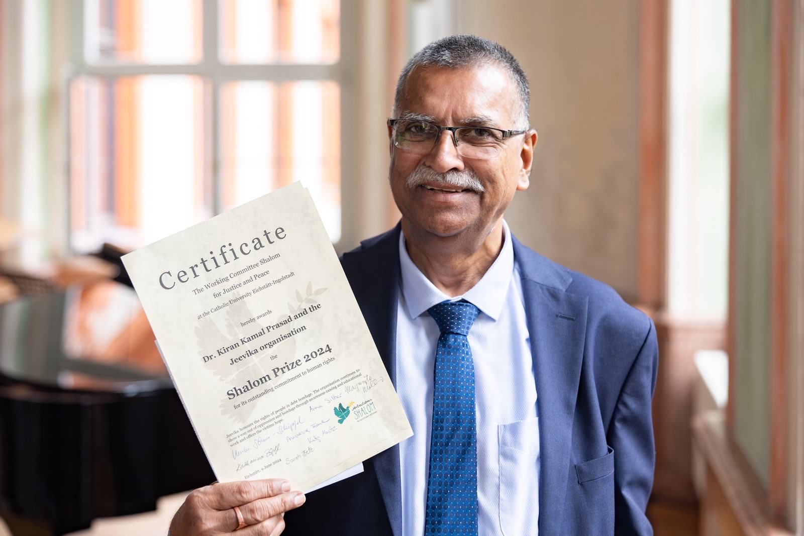 Kiran Kamal Prasad, der Gründer der Organisation Jeevika, nahm am Sonntagnachmittag im vollbesetzten Holzersaal der Sommerresidenz in Eichstätt den Shalompreis 2024 entgegen. Gewürdigt wurde Prasad für sein herausragendes Engagement für die Rechte von Menschen, die in Schuldknechtschaft leben.